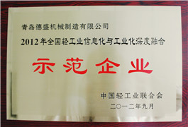 全國輕工業信息化與工業化深度融合示范企業
