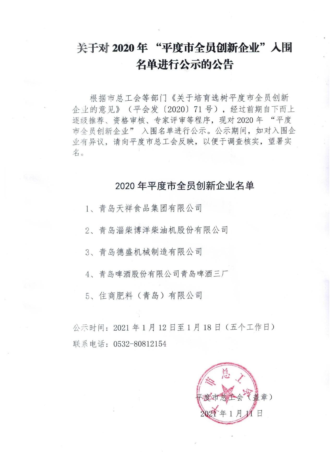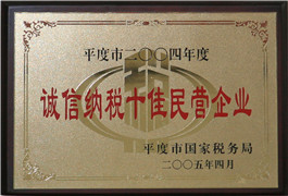 平度市誠信納說十佳民營企業