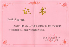 青島市十四屆人大三次會議優秀代表建議