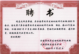 全國摩托車發動機配件行業組組長聘書