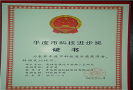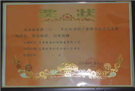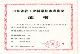 山東省輕工業科技進步獎證書