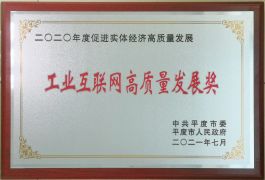 平度市2020年度促進實體經濟高質量發展-工業互聯網高質量發展獎