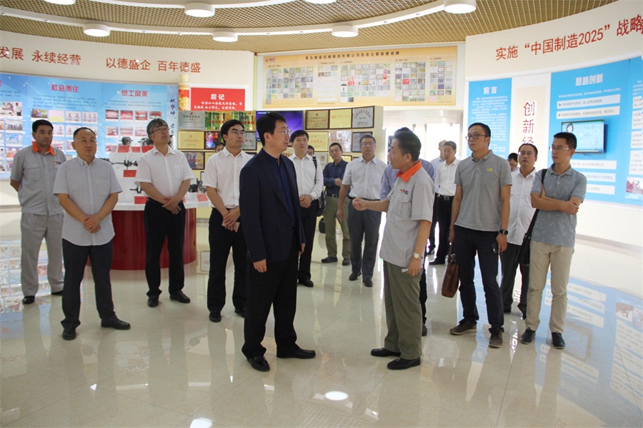9月28日,省民營企業高質量發展服務2隊隊長鄭立波一行10人,由青島市工商聯劉傳華秘書長陪同來公司開展調研和對接,我公司董事長孫佩璋、黨委書記潘勝利、總經理張海德、管理總監李建平陪同。服務隊的各位領導參觀了科技文化館、信息化系統管理平臺、各生產車間。最后,在公司培訓中心現場聽取我公司發展情況匯報,對我公司在新舊動能轉換、高質量發展等方面取得的成績給予高度評價,雙方就今后企業高質量發展服務相關工作進行了初步探討交流。