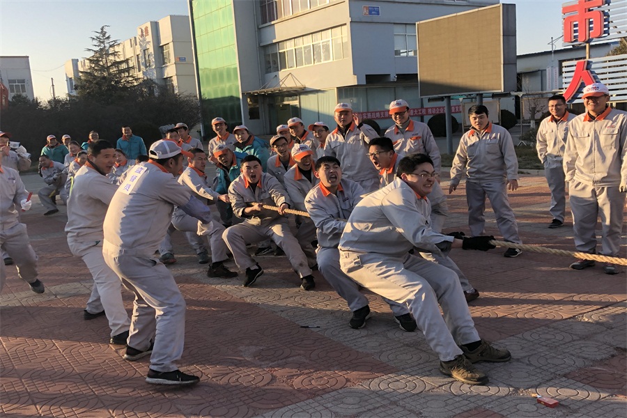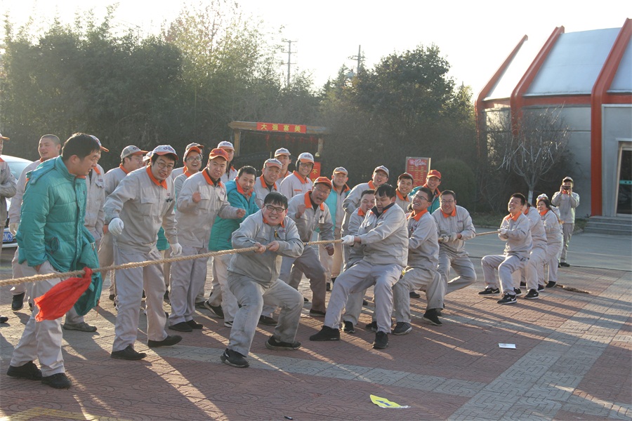 1231日,為豐富廣大員工精神文化活動,不斷推進企業文化建設,公司舉行了“慶元旦  迎新年”趣味體育活動,共包含“同心協力向前沖”和“拔河比賽”兩個項目。