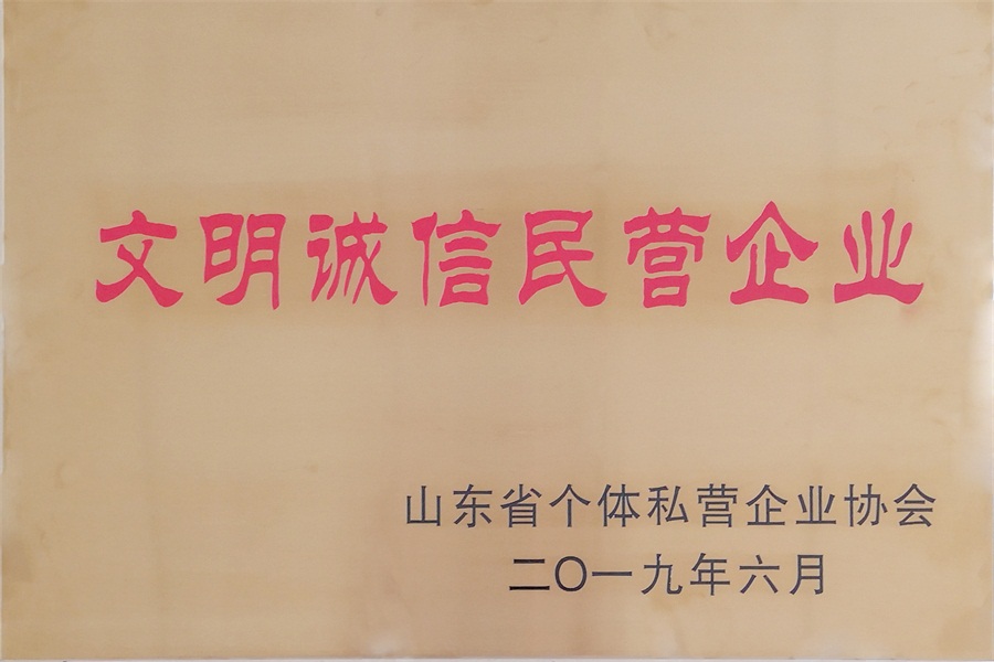 公司喜獲第五屆“山東省文明誠(chéng)信民營(yíng)企業(yè)”榮譽(yù)稱號(hào)