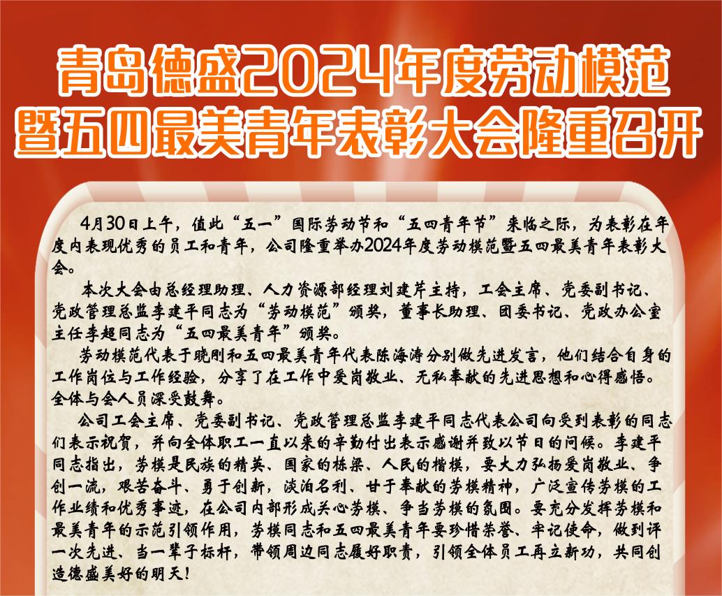 青島德盛2024年度勞動模范暨五四最美青年表彰大會隆重召開